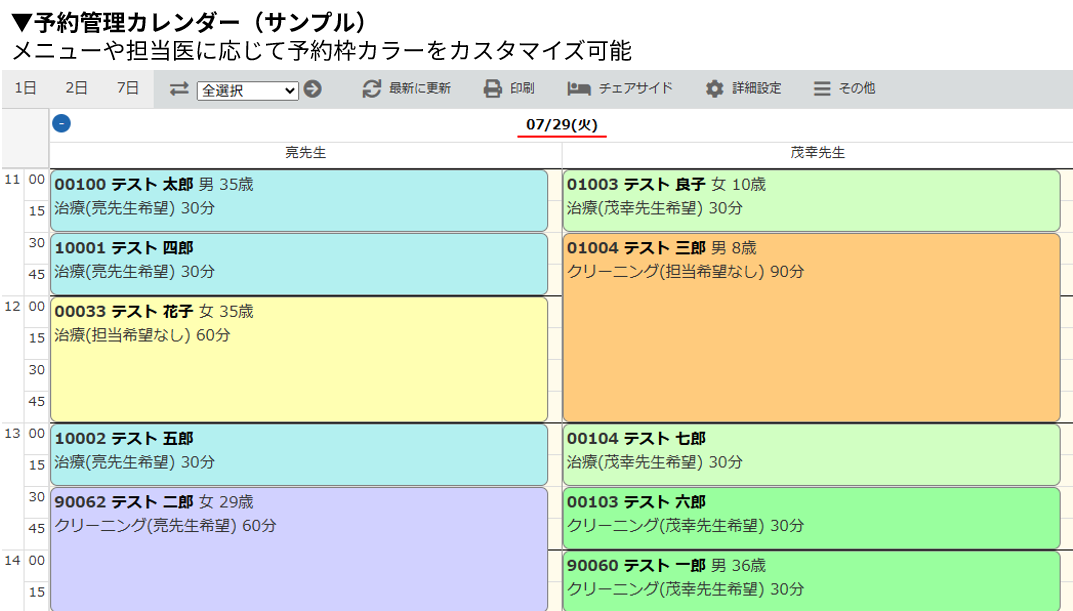 ちょうどアナログからデジタルへの移行を考えていた時期でしたので、導入のタイミングはベストだったと思います。パソコンがあまり得意ではないという受付スタッフは、紙台帳からの切り替えに不安を感じていたようですが、操作が簡単なのでほんの1~2週間ほどでマスターしてくれました。治療メニューごとの色分けなどのカスタマイズについても、今では私以上にスムーズに使いこなしています。実は最初のうちは不安もあって紙台帳を併用していたのですが、レジタスの操作に慣れるにつれて、だんだん紙台帳を使わなくなっていきました。現在はレジタスに一本化していますので、誰にとっても簡単かつ便利なシステムに仕上がっているのだと思います。