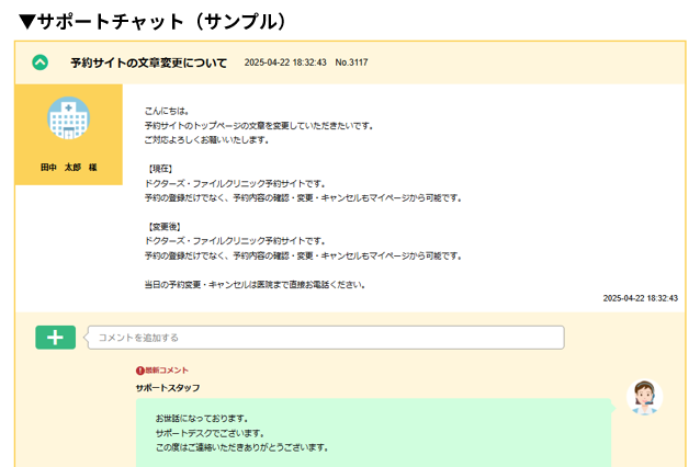 父の代から紙台帳を使っていましたので、導入を決めた当初は少し不安もあったのですが、導入前のオンライン講習が非常にわかりやすく、たいへん助かりました。オンラインで1時間×3回の講習をしてもらったのですが、2回でも十分なくらいに丁寧な講習でした。3回目は、ほぼ質疑応答の時間でしたね。実際に稼働させてみないとわからないことも多々ありますので、「動かしながら都度質問できる」というスタイルに安心しました。システムに付随するサポートチャットがとても便利で、問い合わせると遅くとも翌営業日には回答が来ますし、その日のうちにサポートをしてもらえることも少なくありませんでした。すぐに電話をしてくれたこともありますので、臨機応変な対応にずいぶん助けられました。私は「わからないことはすぐに解決したい」と思うタイプですので、迅速に対応してもらえるのは心強いです。スタッフも私も、わからない、使いにくいと感じた部分はありません。予約数の確かな増加と同じく、配慮の行き届いたサポート体制についても満足しています。