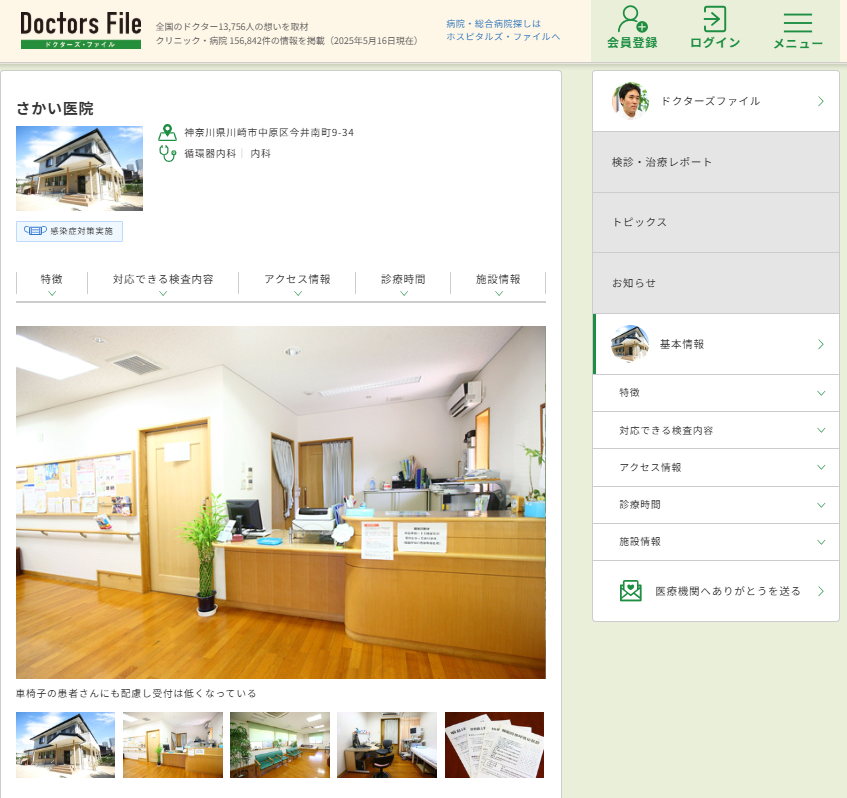 ギミックさんとは長い付き合いで、「リクルートから発足した医療情報サイトです。これからもっと広げていきます」という挨拶をもらったのをよく覚えています。理念や立ち上げの経緯を聞き、「ここなら」と感じました。当時はまだ無名でしたが将来性があり、直感で導入を決めました。私は幼い頃からコンピューターが好きで、電子カルテの開発やシステム構築に携わり、当院も2005年の開業当初から自前のホームページで集患しています。そのため、ドクターズ・ファイル(DF)のようなネットでの情報発信の必要性は感じていましたが、紙媒体にはあまり必要性を感じていませんでした。ただ、ギミックさんのサービスはWebと紙媒体がうまく連携しており、それぞれの特性を活かした情報発信ができる点に魅力を感じました。患者さんは情報を比較して受診先を探すため、DFは自前のホームページだけでは届かない層へのアプローチに効果的だと感じています。導入当初は患者さんからの反響もあり、掲載してよかったと実感しています。